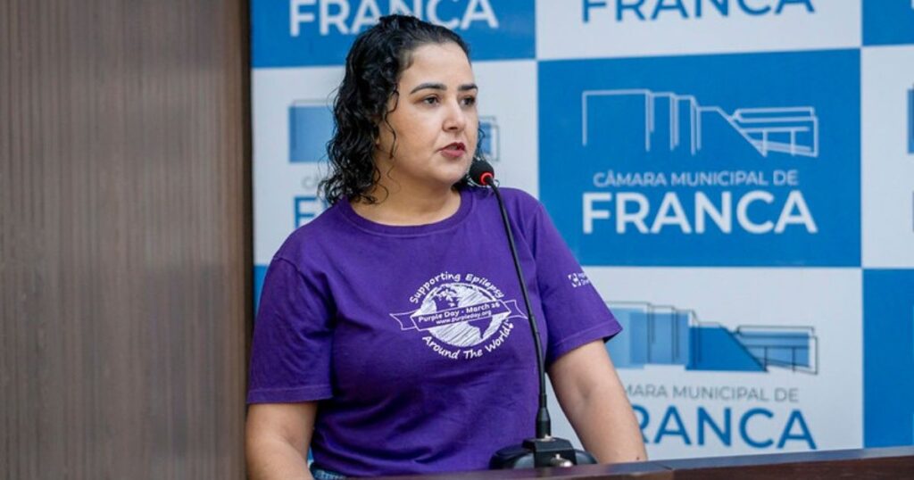 A enfermeira Carolina Camilo Correia utilizou a tribuna da Câmara de Vereadores de Franca (SP) para cobrar das autoridades políticas públicas que auxiliem o tratamento e combata o preconceito contra a epilepsia. Atualmente, a doença atinge mais de 3 milhões de brasileiros.